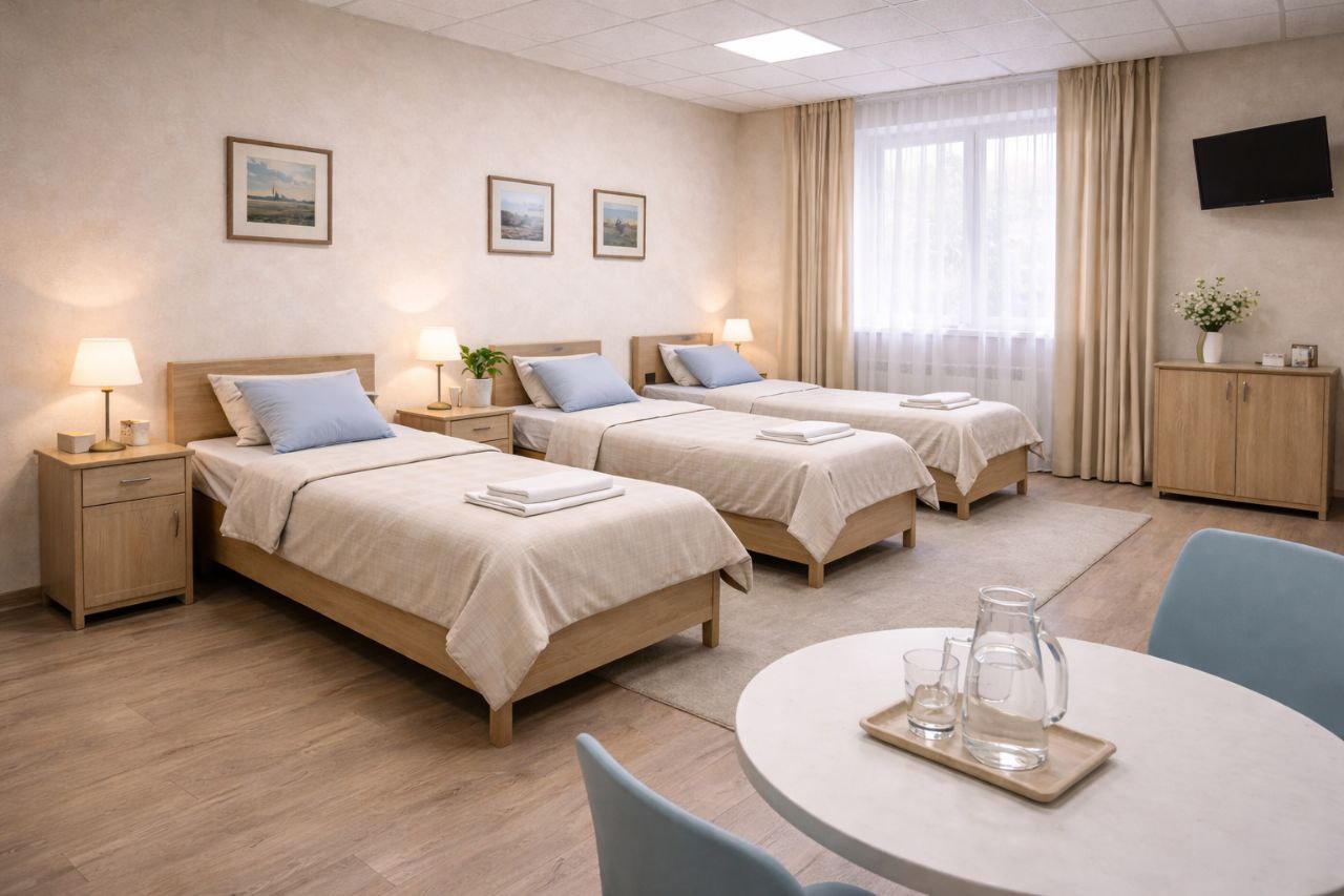 • Комфортный стационар с уютными палатами, трехразовым питанием и зеленым внутренним двориком для прогулок.